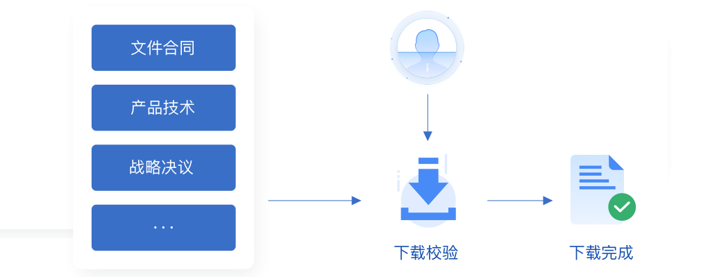 为了保障企业的重要信息安全,可对合同、产品技术、战略决议等文件的下载操作添加身份核验操作,下载时需人脸识别核验身份确认下载权限才能完成下载。